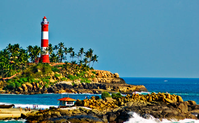 Kovalam is a beach town by the Arabian Sea in Thiruvananthapuram city, Kerala, India, located around 45 km from Hotel RIEEJH. It is the only International beach in India. Kovalam means a grove of coconut trees and true to its name the village offers an endless sight of coconut trees. Kovalam has three beaches (Lighthouse Beach, Hawah Beach and Eve’s Beach) separated by rocky outcroppings in its 17 km coastline, the three together form the famous crescent of the Kovalam beach.